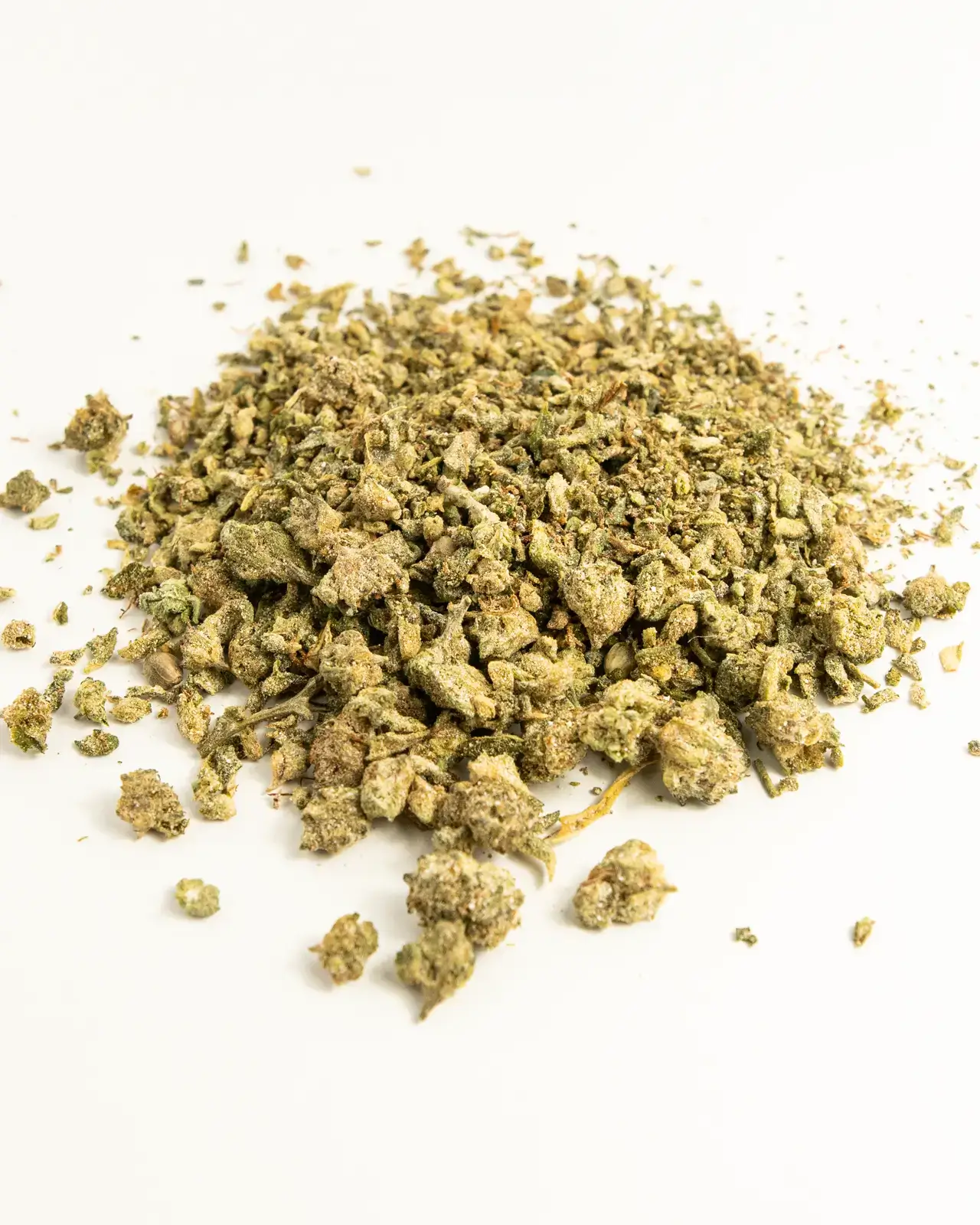 Trim-baserat samlarobjekt, bestående av noggrant utvalda växtdelar såsom smulor, mini buds och shake, inte hela blommor. Ett prisvärt alternativ med samma aromatiska profil som motsvarande Black Widow buds.
